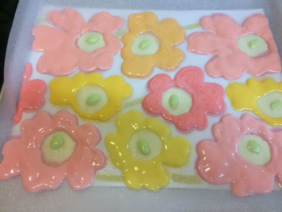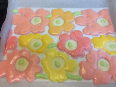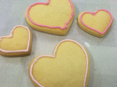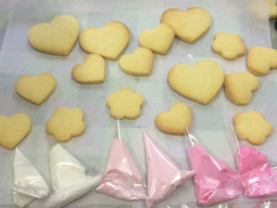 初体験♪ 今日はちょっと時間が取れそうだったので、ついに『あれ』をやろうと決心しました! アイシングクッキーです! 急きょ思いついたので、まずクッキー作らなくては。 アーモンドプードルが入っているのがサクサクして好きなので、いつものレシピにしたいのですが、バターの割合が多いと良くないらしいので、ネットで適当にアイシングクッキー用のレシピ拾いました。 型も家にあったやつ。何年ぶりに使ったのかな アイシング用のシュガー売ってたので、まずはお手軽にこれで。 シュガー100グラムに対して、水大さじ1。 これで固めのアイシングが出来るらしい。 ヘラでまとめます。かたい。 コルネで絞れる気がしない、なので、ちょっと水追加。 色を付けて、かためとやわらかめのアイシング作って、コルネに入れたら、もう1時間以上経過。 初めてチャレンジするものは勝手がわからない~ ライン絞ってみた。難しい、、、アイシングがちょっとかためだった。。。 ・・・3時間半くらい格闘していたみたいです・・・ できたー!! 楽しかった! アイシングのかたさが肝ですね! ちょっと慣れてきた頃に終わりました。 ドットが難しい。 またチャレンジしてみる。