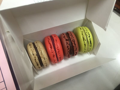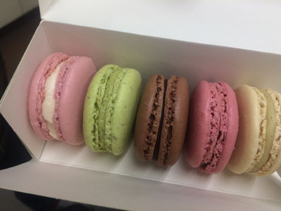マカロン攻略のために必要なこと 先日、初マカロンを見事に失敗したのですが、よく考えてみると、マカロンってちゃんと食べた記憶が無い。 ということは、マカロンってどんなものだか実はよく知らない。 よし!美味しいマカロンを買って食べよう! 調べました、美味しいマカロン。 で、買ってきました。 まずは『ラデュレ』のマカロン。 まぁ、マカロンと言えばラデュレ。(知ったかぶり、笑) フランスで作っているらしい 左からローズ・ピスタッシュ・ショコラ・フランボワーズ・ヴァニーユ そして、もう1軒 『サダハル・アオキ・パリ』 こちらもフランスより直輸入らしい。 アールグレイ・フランボワーズ・ショコラ・ピスターシュ ヴァニーユが無かった、残念。 食べた感想は、、、どちらも美味しかった(笑) 好みで分かれると思いますが、ラデュレの方がちょっと好みかな。 両方のお店にあったピスタッシュやフランボワーズも素材の味がよりした気がする。 ローズは本当にローズだよ! なんか、バラの風味。私的に好き。 色あいも好き。 まかろんは外側はさっくり、中はしっとりなのね。 それにしても、もうちょっと安いといいのにね。 ラデュレで『ご自宅用ですか?』と聞かれたので、『はい』と答えたら、紙袋じゃなくてビニールの買い物袋だった。失敗。 紙袋が心躍るって書いてあったのを読んだのに、、、