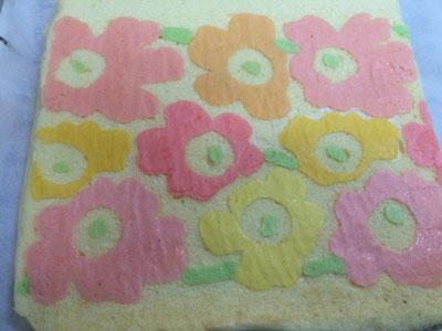 ウニッコ柄(マリメッコ)のロールケーキ クッキングシートをデコロールで使うようになってからまたちょっとやる気が出て来た私です またまたちょっと早く帰ることが出来たので、やりたかった柄に挑戦しました! 今回はデコロールの神、Junkoさんのこのブログを見て絶対いつかやりたかったマリメッコ! もう雑貨好きにはたまりませんよ 計量・コルネ作り、その他色々準備で30分も掛かりました。 さて、色は7色。 模様の生地は2回に分けて焼きました。 なんかテンションあがるー! 本来は卵黄3個、卵白4個分の生地ですが、模様の生地にたくさん卵白を使ったので、卵白をもう1個追加しました。 紙をはがしても模様は綺麗なままでした! 今回は柄を見せるために少しでも太巻きにしたいので、中には生クリームと黄桃(缶詰)入れました。 めっちゃいい感じ! 気に入らない点は・・・ ◆一番面積の多い色の生地がちょっと足りなかった。 ◆模様の生地とベースの生地に一体感が無いっ!! ◆そして、ちょっと色が濃かった。その割に緑色だけ薄かった。 ◆表面のしわはクッキングシートだと仕方ないとわかっているんだけど・・・ ◆ケーキの型が28センチ角なのでちょっと生地が薄めになる。 といった感じです。 準備から完成まで2時間!頑張った! ここまで出来ると満足感高し! 2015年7本目!