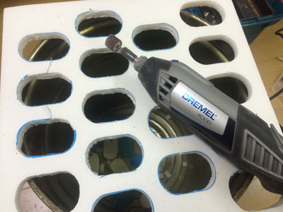 ダックワーズの型を自作する ダックワーズの型が欲しい。 でも、他のお菓子に比べて型が少ない。 自作している人がいたので、私もチャレンジしてみる 買ったのはポリスチレンボード 5ミリの厚さなので2枚買って接着剤でくっつける。 発砲スチロール用の接着剤でないとダメらしい。 スーパーXという接着剤でくっつけた。 イラストレーターで図案を起こす、カッティングシートを貼って周りをカッターで切る。 5つカッターで切ったら面倒になってきた(笑) 私がやりたいのはダックワーズを作ることで、型を作ることで無かった。 なので、道具の力を借りる まずドリルで穴あけ、そして、糸鋸盤で大まかにカット 道具最高! あっという間にここまで。その後はリューターで形を整える 道具最高! 最後は手でヤスリがけ。 ちょっといびつ。 もう1枚作ったらもっと綺麗に作れると思いつつ、、、ああ、私の作りたいのは型ではなく、ダックワーズだということを思い出した。