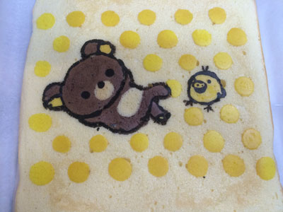 リラックスできず(笑) 夜に珍しく時間が取れたので、がっつりデコロール(笑) 最初に黒い線を描き、焼いてから、色4色。 焼いてからベースの生地で縁取り。 右は焼いた後。どうかな~ リラックマ!のんびり寝転んでる場合じゃないよ! 黒い縁取りが!! 仕方なくブラックココアをお湯に溶いたもので書く なんとなくそれっぽくなったけど、またもや巻いたら割れる Junkoさんのブログを片っ端から読んで、対策を書き留めます。 ◆黒い縁取りは少し固めの生地にする ◆生地に厚みを持たせる(これは広い面かな?) ◆割れるのは乾燥が原因。少し熱が残っているうちに巻く ラップをかぶせてもよい ◆生地の混ぜ方が足りない。 ゴムベラからリボン状に落ちるようになるまでしっかり混ぜる
