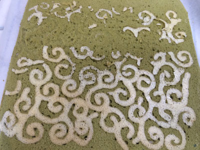 ストレス発散のはずが! 久しぶりにデコロール、51本目 唐草模様のロールケーキ、中身は生クリームとあずき ストレス発散のはずが、ストレスたまってしまった シリコンシートにスプレーの油吹いてからキッチンペーパーでふき取っているんだけど、油が薄いのかな? 今度は拭き取らずにやってみる!