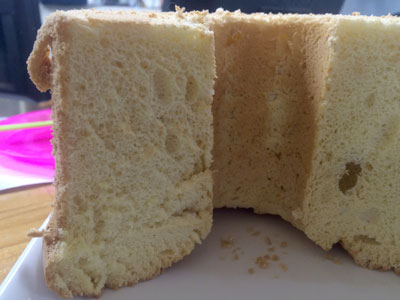 エアリーなシフォン! いつも焼いている20センチのシフォン型で、先回のシフォンの材料(豆乳・きび砂糖・太白ごま油)で焼いてみた。たぶん今年19台め そして、ソフィーさんから『エアリー感が足りない』という相談があったので、これに挑戦です。 いつも焼くだけでほとんど自分で食べなかったので、あまり気にしていなかった焼き縮み。 この下の部分ね 参考にしたのはこちらのサイト このサイトを参考にいつも作っている時とちょっと違うのは ・型に流したら箸でぐるぐる混ぜる ・型に生地を擦り付ける ・焼きあがったら15センチくらいの高さから落とす 「 焼きあがった時と冷ましてからの写真 そして、こんな感じ 焼き縮みが減りました! かなりいい感じです! PR