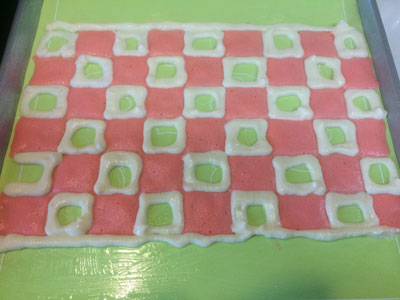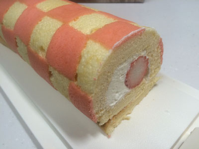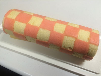 2015年もロールケーキから 元旦からロールケーキ! 実家で親戚が集まるので、持って行きます。 体調もイマイチだったので、簡単に。 市松模様です。180度で1分30秒焼いて その後に気泡防止にベースの生地を絞って、180度14分 綺麗に焼けた! 最近デコロール作っていなかった割に、なんかいい感じ! イチゴ入れて巻きました。 割れも全く無くて、デコロール上達したのではないかと勘違いするくらい(笑) そして、もう1本はスフレ生地 このスフレロールケーキが味は一番美味しい。 2015年1本目・2本目 今年は何本焼くのかなぁ・・・