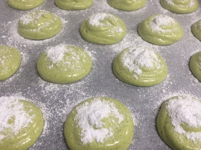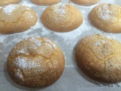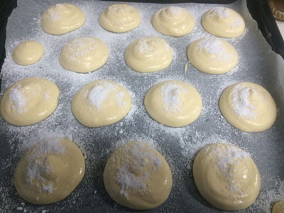 ブッセ初挑戦 製菓材料のお店で『ダックワーズとブッセ』という本を見つけて、ダックワーズが作りたくなりました。 ダックワーズの型が無いので、、、先にブッセ作りました! 本に『まずは基本のブッセを作ってみましょう』って書いてあったので、素直に聞きます。 卵黄生地をメレンゲ合わせて、粉合わせて生地完成! このあたりは他の生地でも慣れたものですが、絞り袋に入れるのが慣れてなかった。 粉糖かけて180度15分! メロンパンの皮ではありません!いい感じに焼けました! ブッセというのは、『ひとくち』という意味だそうです。 とてもひとくちでは食べられませんが。 練乳と生クリームでミルククリームを作り挟みました。 すごく簡単で、美味しい。 今度は他のフレーバーにも挑戦してみます。