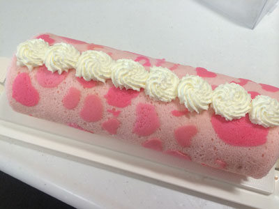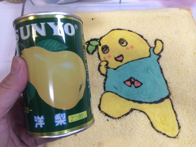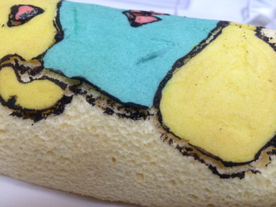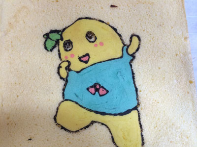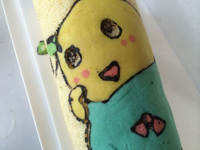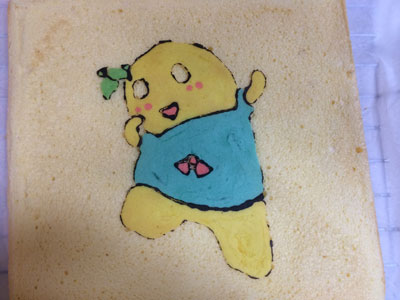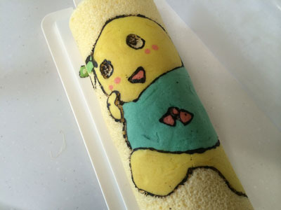 ふなっしーだなっしー!! いつか作りたいと思っていたデコロール、ついにチャレンジしました。 今年になってもう46本目、そろそろこいつをやってもいいんじゃないかと・・・ 模様の生地は5種類 黒はブラックココア、残りはアイシングカラーです 黒の枠とほっぺの赤だけ先に焼き、残りの色を 黒が均一の太さにならない。。。 焼きあがりました。 はがします・・・ がーん、、、黒のふちがほとんどシリコンシートにくっついてしまいました。 仕方がないので、ブラックココアを水でとき、筆で描きました 中身は生クリームと、、、梨です。 梨の妖精ですもんね。。。 なかなかいい感じに見えますが、近くで見ると悲惨です。。。 巻いたら生地部分と模様部分の境目割れました・・・ あーもう梨汁ブシャーなくらい(?)惨敗な感じです 原因はいくつか思い当たります。 ・模様生地の硬さ ・黒のラインを焼いたときに1分焼いてしまった(30秒でよかったかな) ・シリコンシートに塗る油が少なすぎた またリベンジしなくては