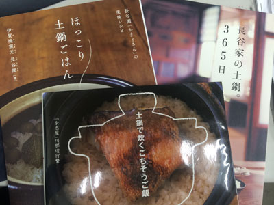 かまどさん!! 1年前くらいにお客様が『我が家には炊飯器がない、土鍋でご飯を炊いている』とおっしゃっていました。それも2人も! おまけにそのうちの1人は板前さんですよ。 もうこれは土鍋買うしかないでしょ! ・・・と思って、はや1年。 とうとう買っちゃいました 長谷園のかまどさん!3合用! そして、炊いてみました 面倒な火加減の調整も要らず、、、美味しい! そして、中古本も買ってみました。 (趣味の数だけ本が増える) 食欲の秋、元気が無かった私もやる気出てきました! とりあえず色々作ってみます!