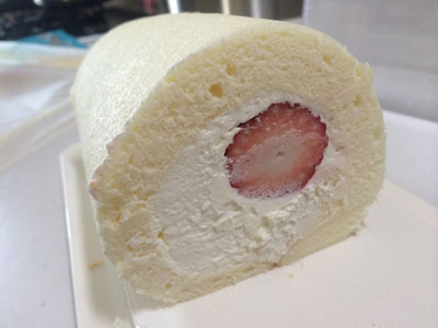 失敗続きで・・ 2014年 32本目になるはずが・・・ スポンジあまり膨らまず、かたい・・・ 巻けそうになかったので、3分割してクリーム塗ってこうなった ロールケーキじゃないし。 で、なんかうまくいきそうにないので、ちょっとモチベーション下がり気味・・・ だったんだけど、息子の一言 『イチゴのロールケーキが食べたい』 よしよし、おかあさんが作ってあげよう! で、気を取り直して32本目! 失敗の少ないものを選んで何も小細工せず。 クリームとイチゴで。 よかった、美味しく出来た。