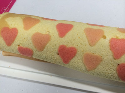 お友達のお土産に 2014年37本目、38本目 スフレ生地にカスタードと生クリーム混ぜたもの ハートのデコロール生地にバナナと生クリーム巻いた物。 慌てて作るとあまり完成度高くないのは毎度の反省なんだけど、、、学習してないなぁ