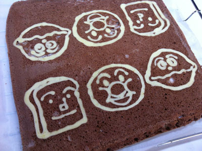 アンパンマンのロールケーキ 2014年 3本目 4本目 デコ★ロールのJunkoさんのブログにこのアンパンマンのロールケーキがあって、どうしても作りたくなって、イラストレーターで画像起こし!! 中は生クリームとバナナ! 巻きの時にカレーパンマンがちょっとはがれてしまった、、、 4本目は元旦と同じスフレ生地のプレーンなもの。