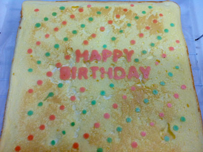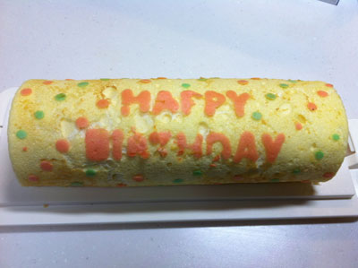 お誕生日のロールケーキ 2014年 6本目 7本目 妹の誕生日だったので焼いてみた。 同じものを2枚焼いたけど、1枚目は文字がほとんどはがれてしまい、リベンジしたんだけど、やっぱり文字がはがれちゃった・・・1枚目は家で食べました。 中は生クリームとイチゴ(あまおう)