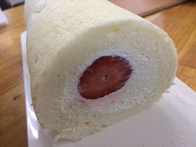 いつもの美味しい生クリームとあまおうの取り合わせでロールして終了。