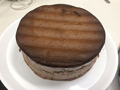 ココアを入れたスポンジはちょっと目を離した隙に温度が上がっていて、ちょっと表面が焦げちゃった。でも許容範囲内。中は大丈夫。