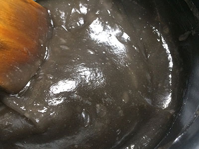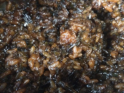 調味料と麹の入った鍋に入れて1時間半くらい煮詰めて出来上がり。