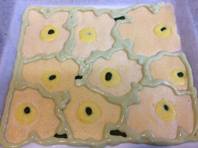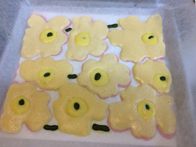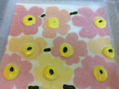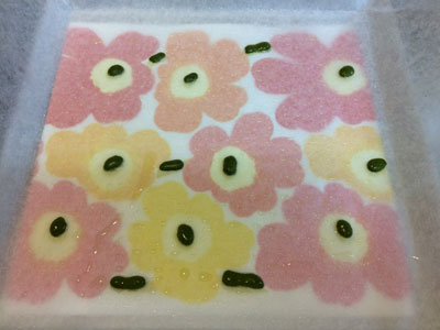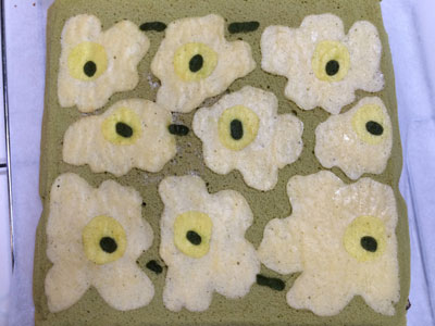 娘の誕生日にウニッコ柄ロールケーキ 娘の誕生日がやってきました。 ここ数年なぜか娘のバースデーケーキは惨敗です。 今回は娘の好きなマリメッコのウニッコ柄をアレンジしてみました 前回のウニッコ柄のロールケーキが気に入っていたので 図案は同じものを使いまわします。 ただ、今回は一回り小さい25センチ角の天板を使用 久しぶり過ぎて感覚が戻りません。 模様生地の分量が全くわからず(笑)作り足しました なんとか焼けました、オーブンの温度もここのところ落ち着いてます 悲劇はここからでした、、、やっぱり25センチ角は生地が厚すぎます 誕生日にまたもや失敗、、、結局娘にはもう一日待ってもらうことにしました 2015年22本目??